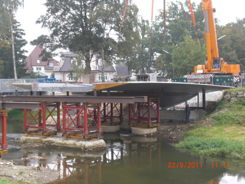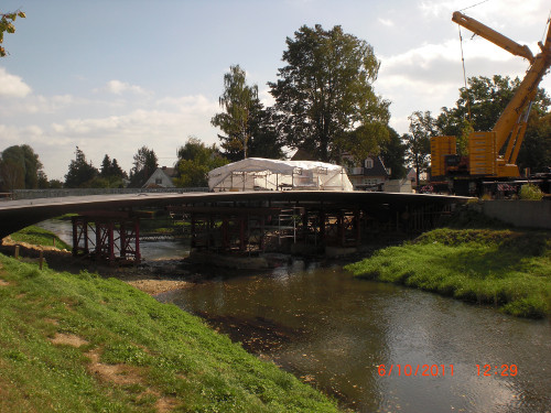Erstellung einer befahrbaren Behelfsbrücke während der Bauzeit